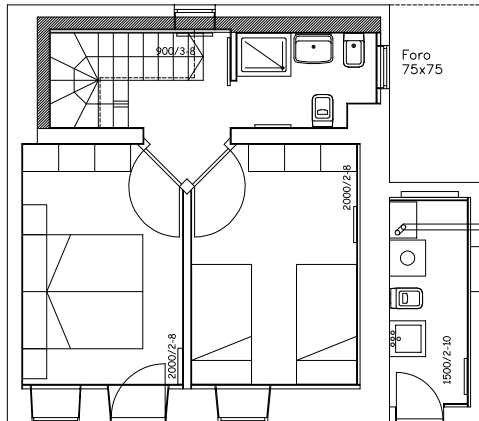 L’immobile si sviluppa su due piani e comprende: cucina con ampio soggiorno a primo piano, con soppalco utile come deposito o anche per aggiungere un paio di posti letto. La zona notte vera e propria si trova invece a piano terra: due camere da letto matrimoniali e bagno, lavanderia con accesso autonomo dove si trova la caldaia a gas, nuova del 2021. Nel soggiorno invece si trova anche una stufa a pellet, che aggiungendosi al sistema di riscaldamento a gas garantisce la piena e gradevole vivibilità degli ambienti anche d’inverno.