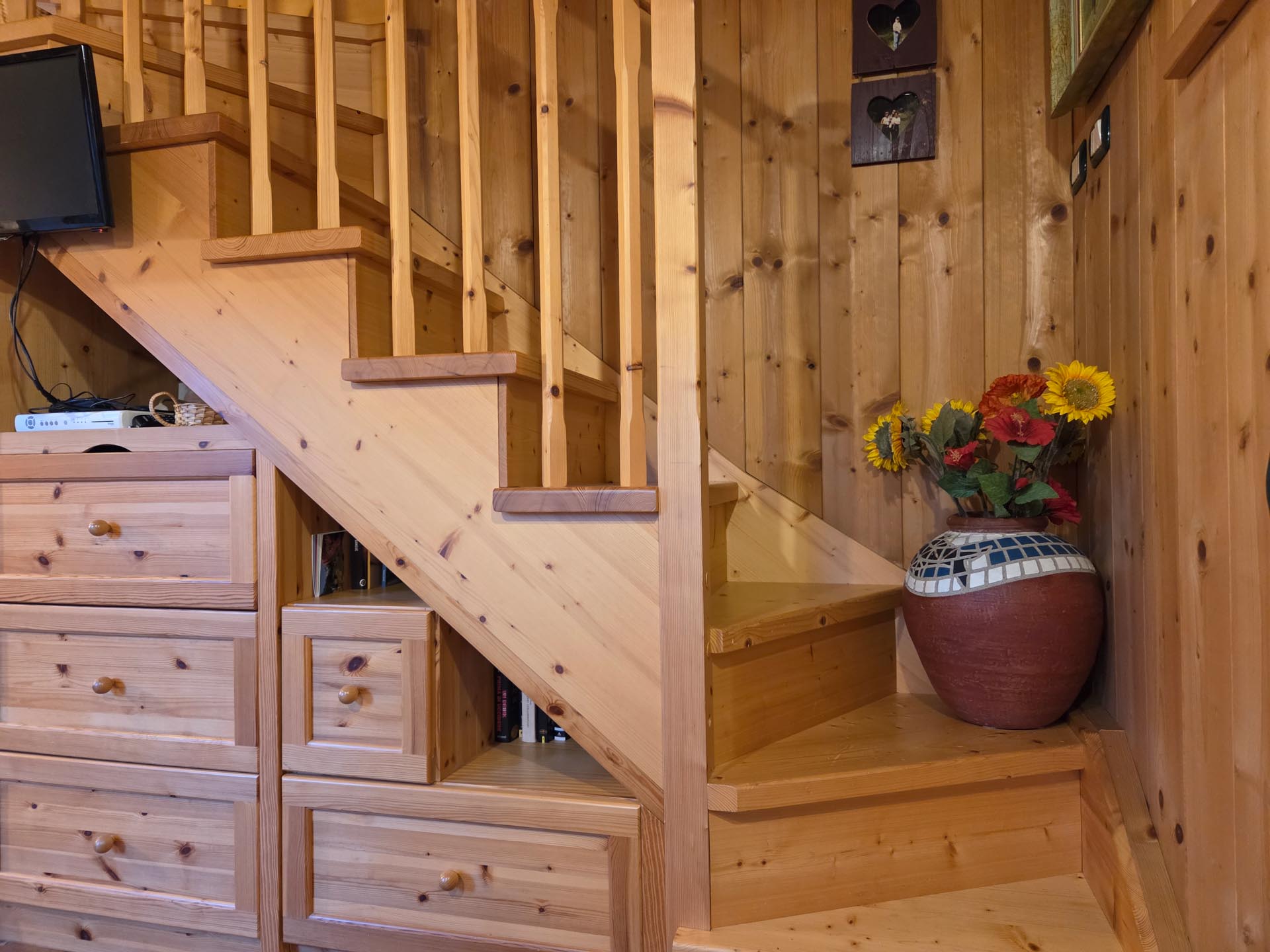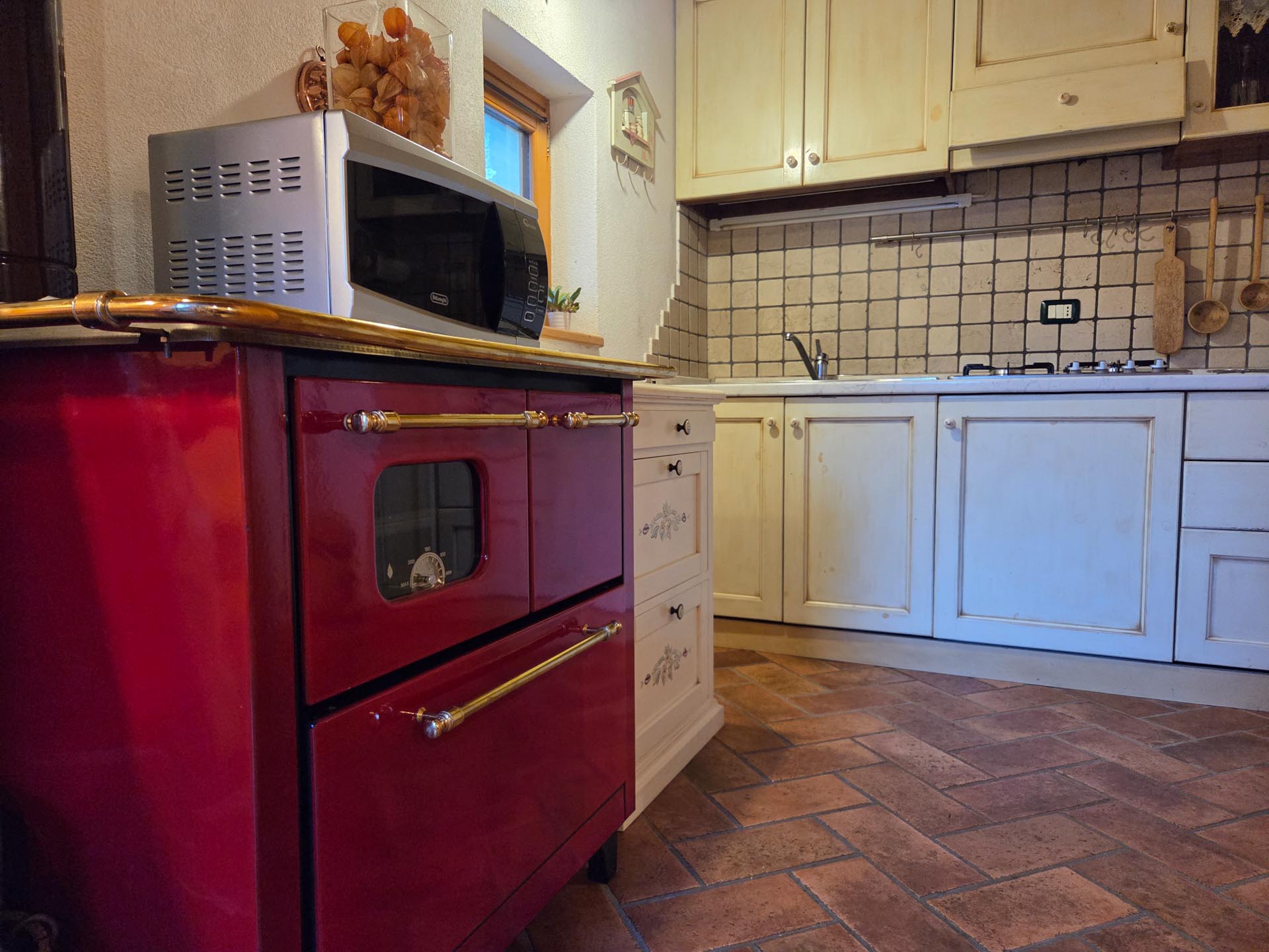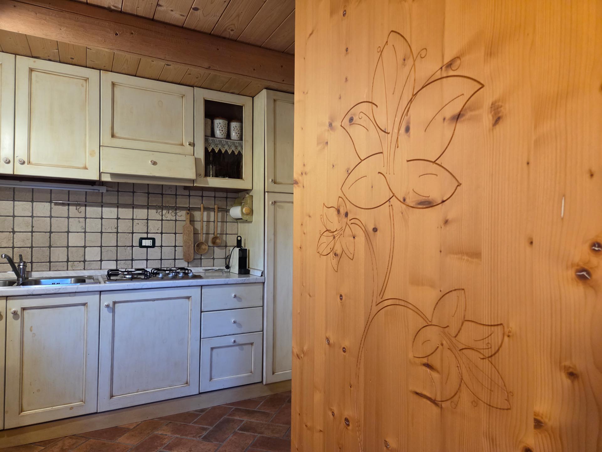 Le DUE BAITE si trovano una accanto all’altra e comprendono due cucine a gas con soggiorno, due soppalchi con letti matrimoniali e due bagni finestrati. La baita più grande è riscaldata da CALDAIA A GAS con radiatori e SPOLÈR, fornello a legna tradizionale; l’altra è riscaldata da radiatore elettrico. La baita principale presenta una RITONDA, elemento architettonico di pregio caratteristico che partecipa ad un contesto elegante, piacevole e comodo.