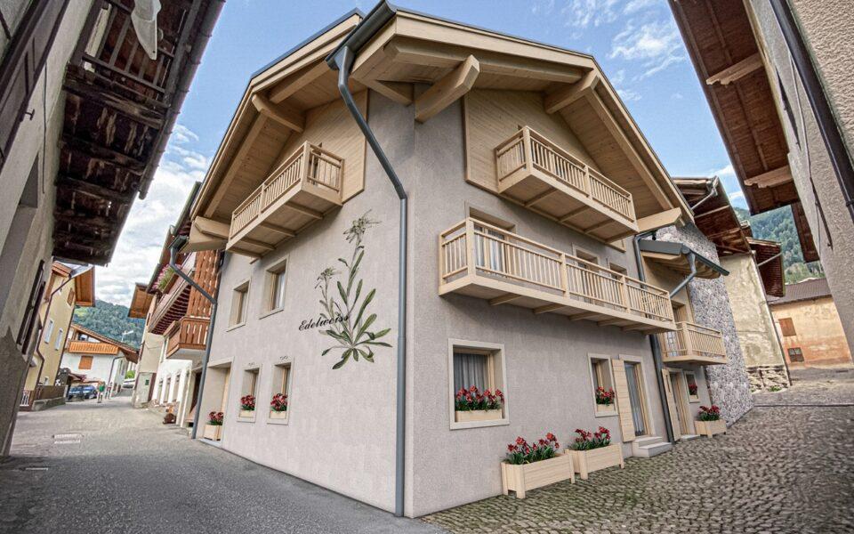 Le finiture in legno dell’appartamento creano un’atmosfera calorosa e tradizionale che si sposa a meraviglia con il contesto paesano e rustico trentino, pur mantenendo ottimi standard di modernità e comodità.