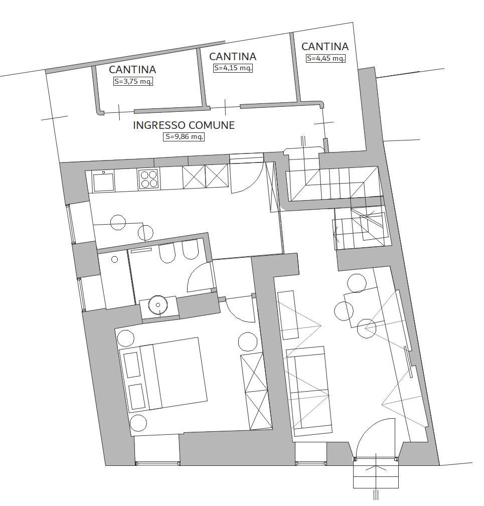 L’appartamento misura 54mq commerciali e comprende zona cucina, soggiorno, una stanza da letto matrimoniale, un bagno e cantina. Tutti i locali abitabili sono finestrati, garantendo una buona luminosità e arieggiatura agli spazi.