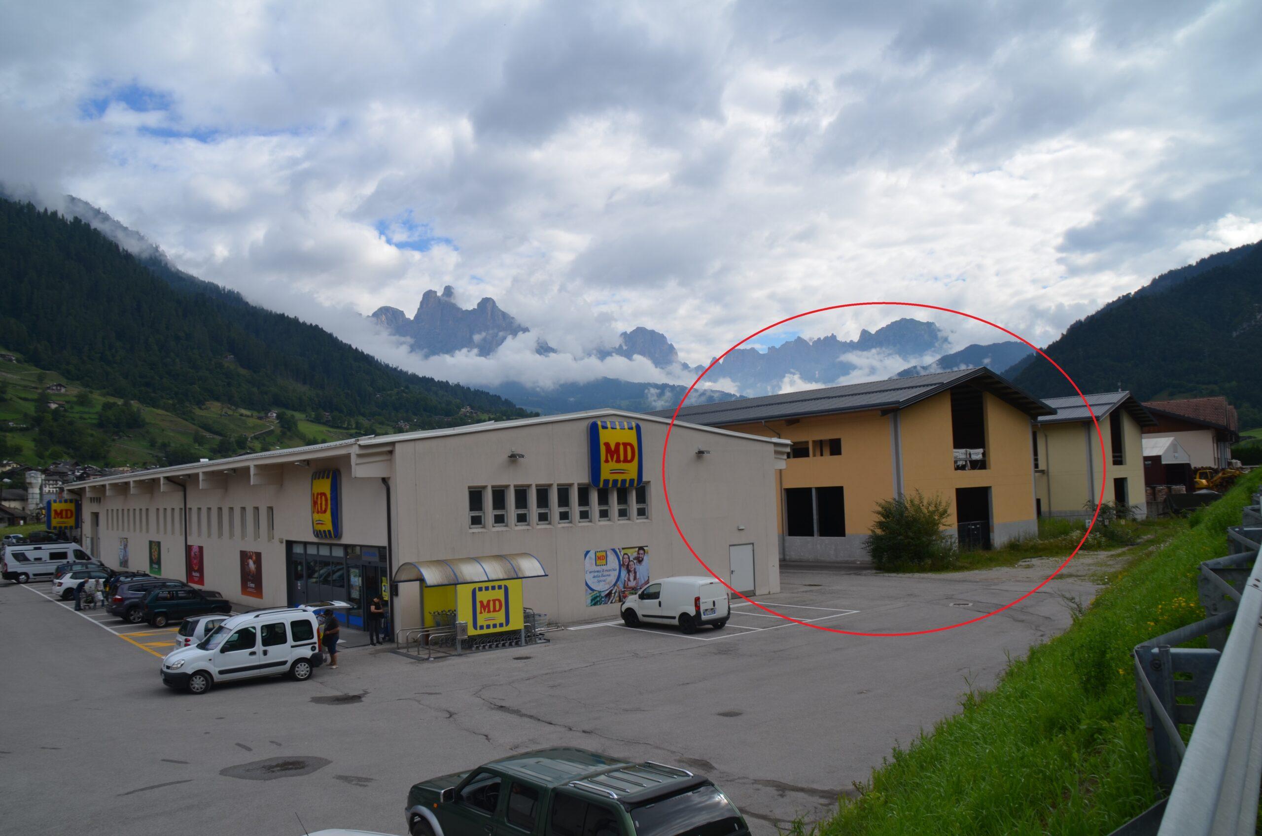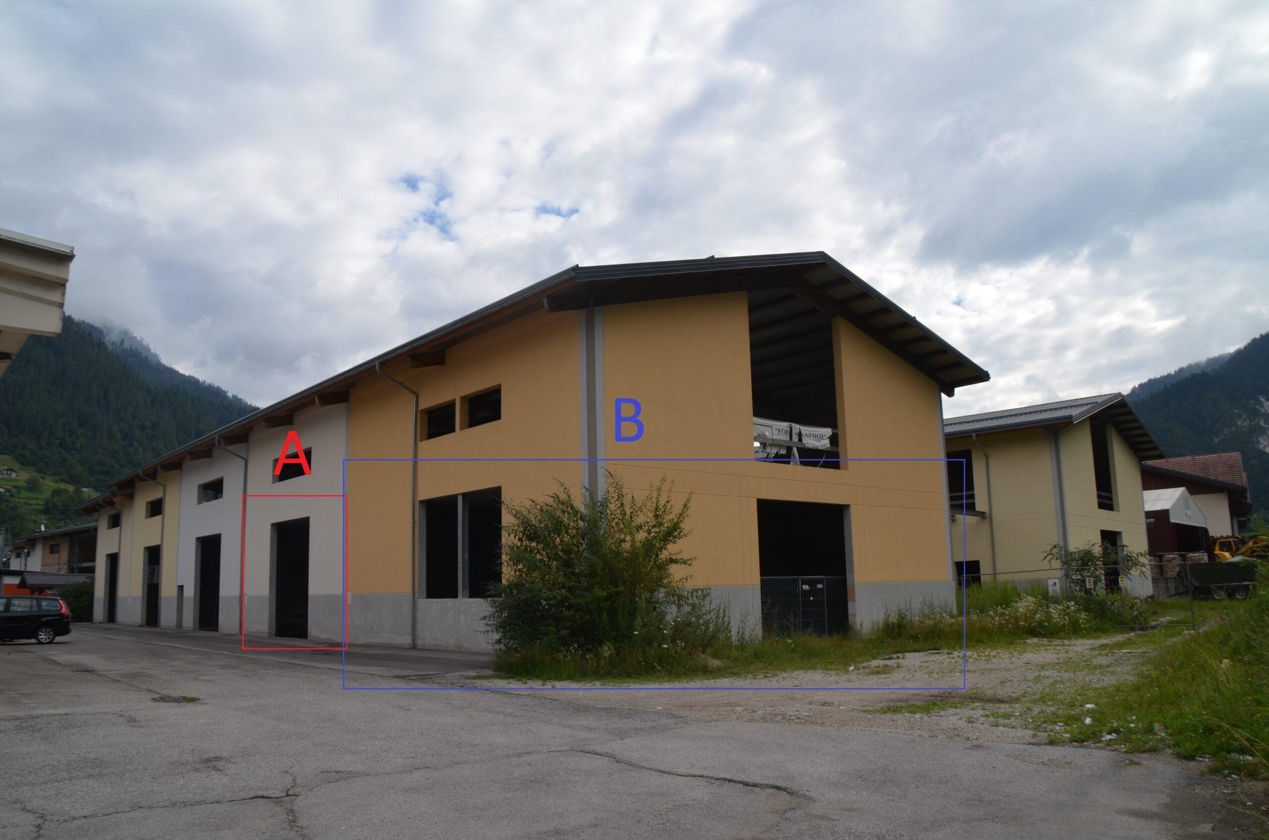 Due porzioni di capannone a piano terra con posti auto e anditi esterni, in località Giare a Imèr.